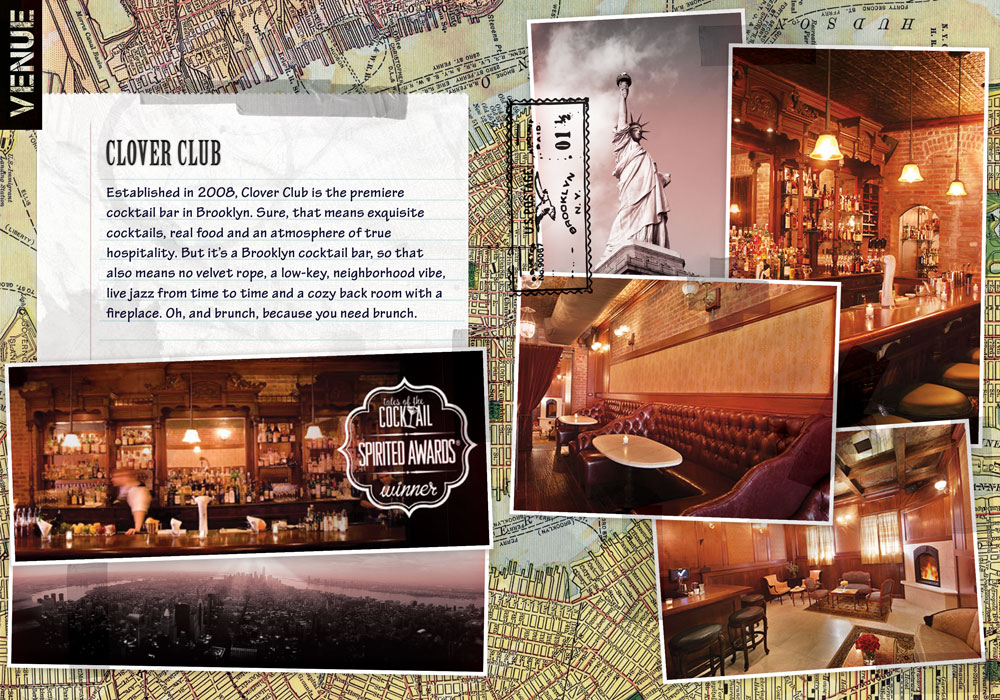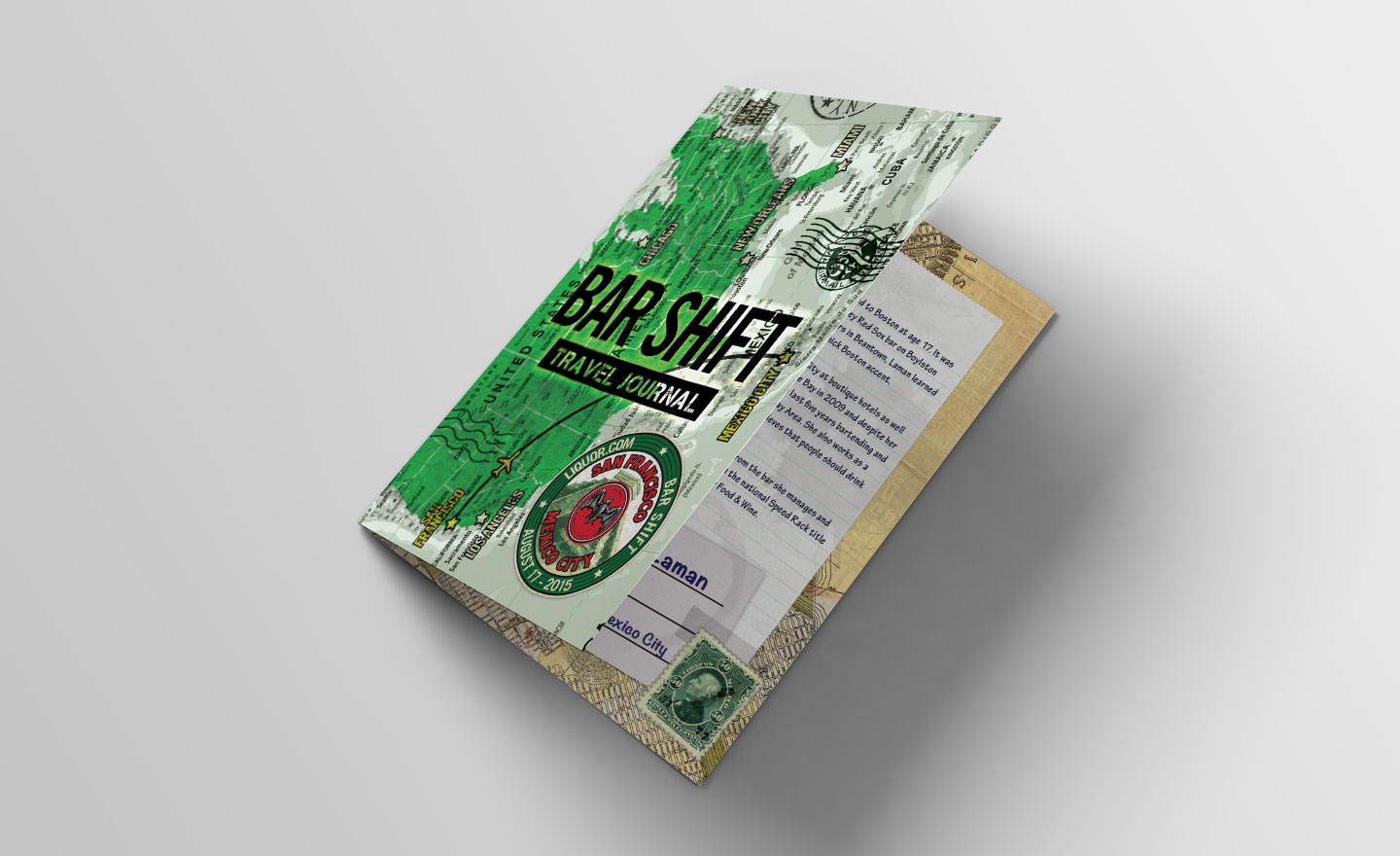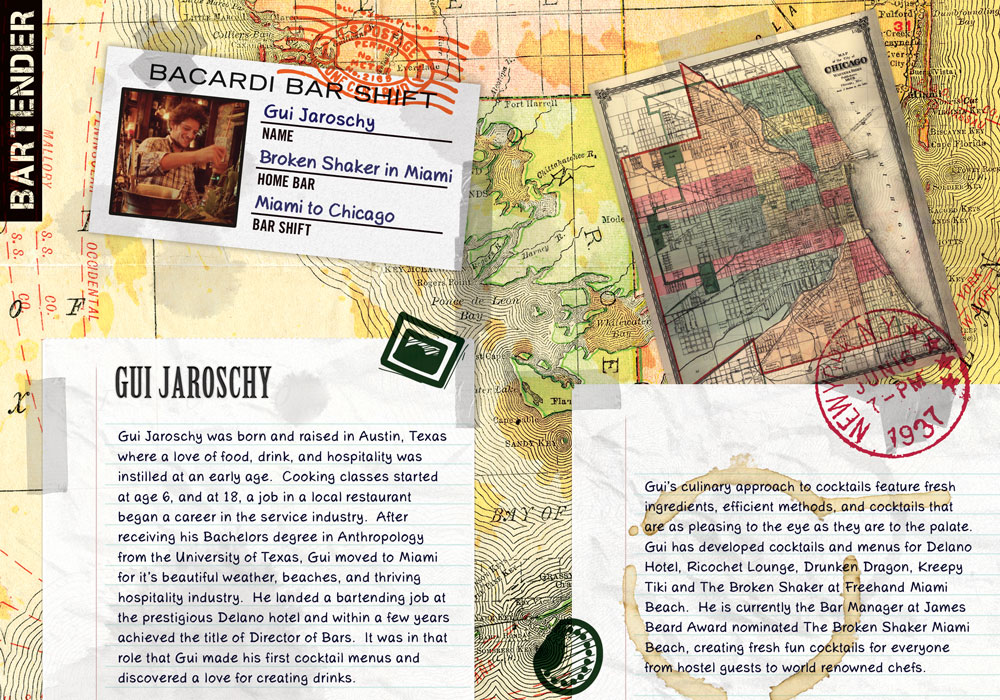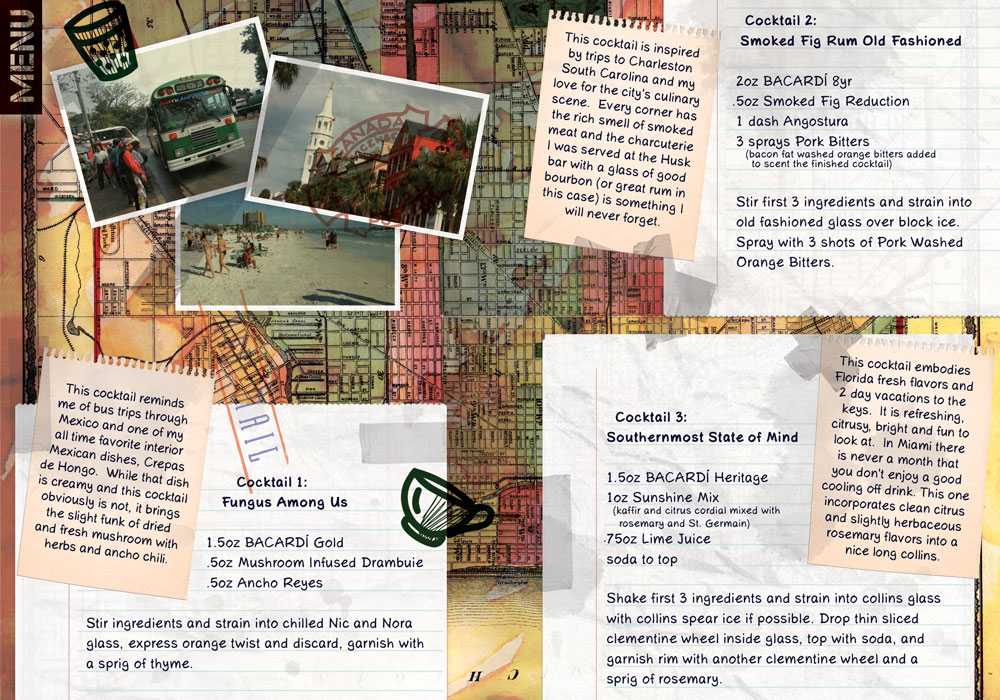 Most of the print collateral such as cocktail menus, posters, travel badges and the travel journal itself can be seen in the teaser video at the very top. Additionally, here are some samples of the creative material developed for Bacardi's 'Bar Shift' travel journal covering various cities and venues.