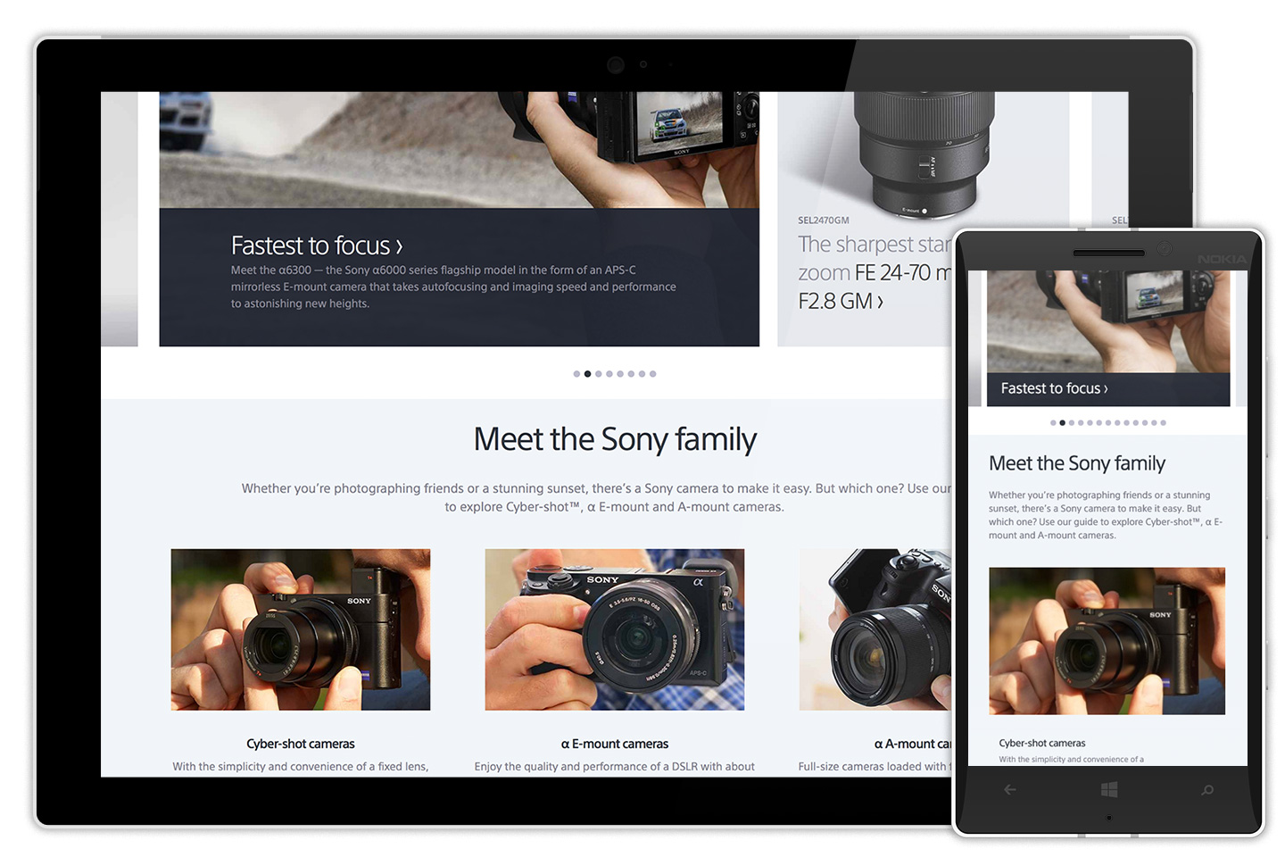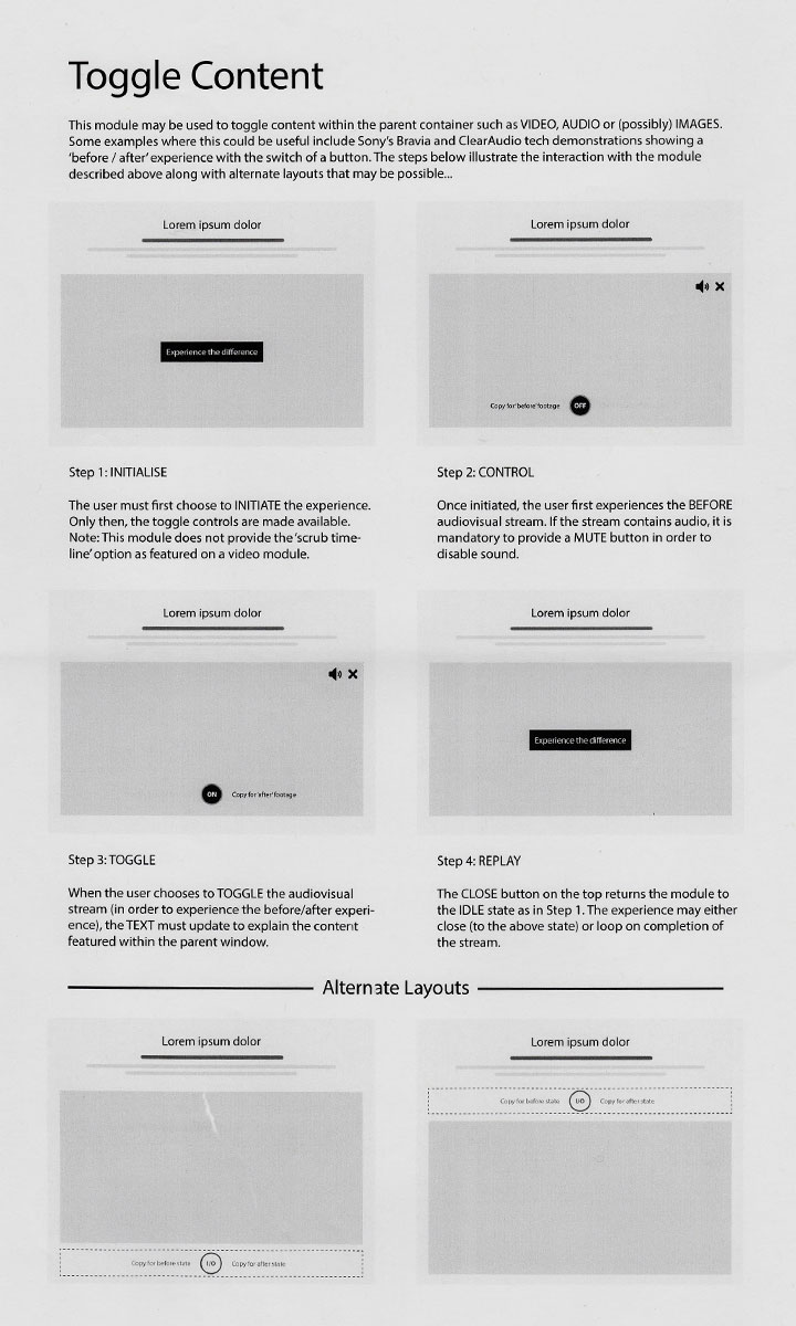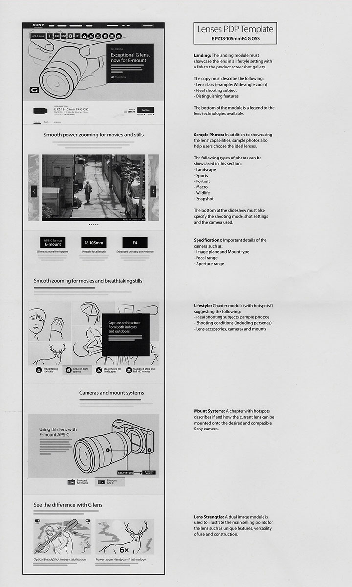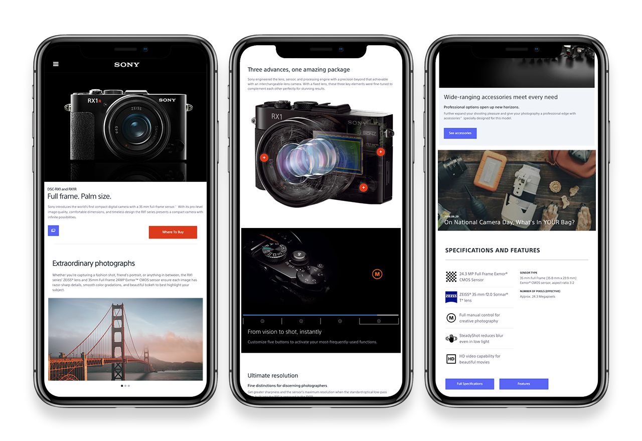 At SapientNitro, we redesigned and migrated Sony's ageing marketing and e-commerce platform serving around 400 million visitors each year to a mobile-first responsive web experience. The goal was to establish a human-centred experience that would migrate their in-store traffic to their online e-commerce platform. My role was to design the modular interaction system for the new online experience to encourage consistency across all Sony websites.