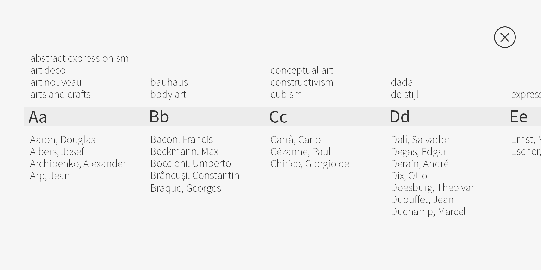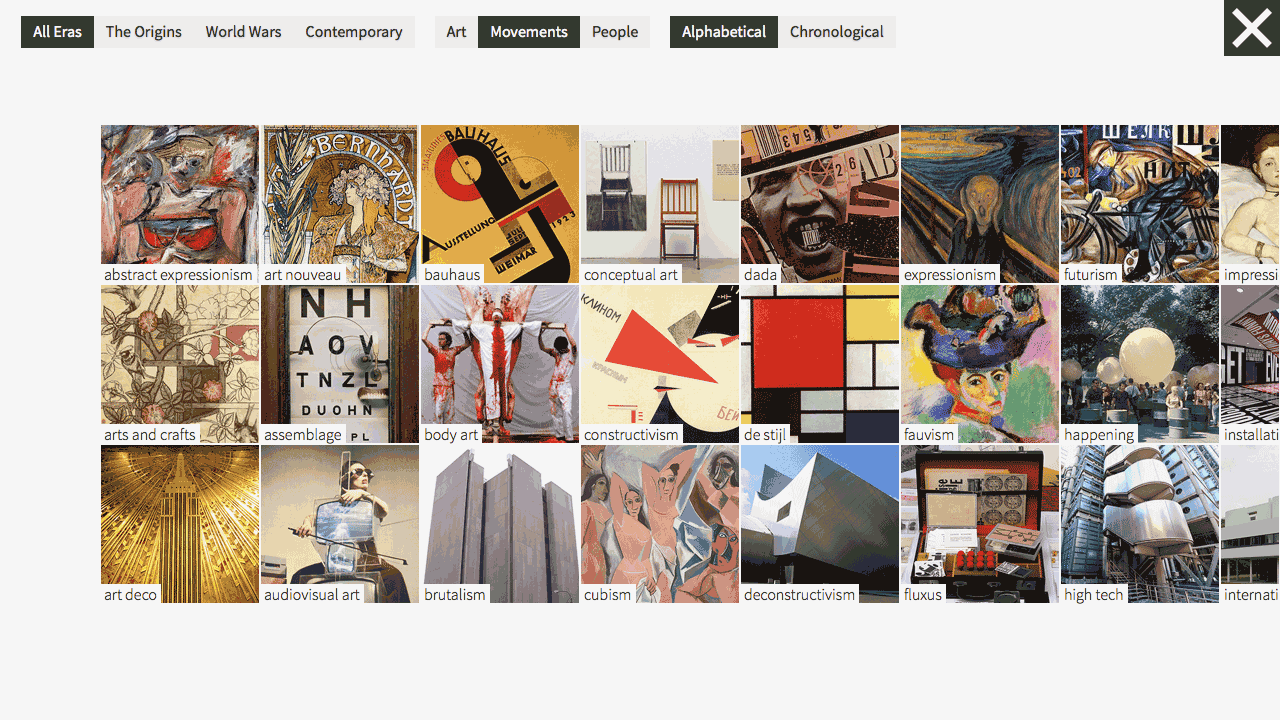 Alternatively, users may search for specific art movements or artists. This is particularly useful to users who know precisely which artist or movement they are looking for as opposed to exploring modern art chronologically.